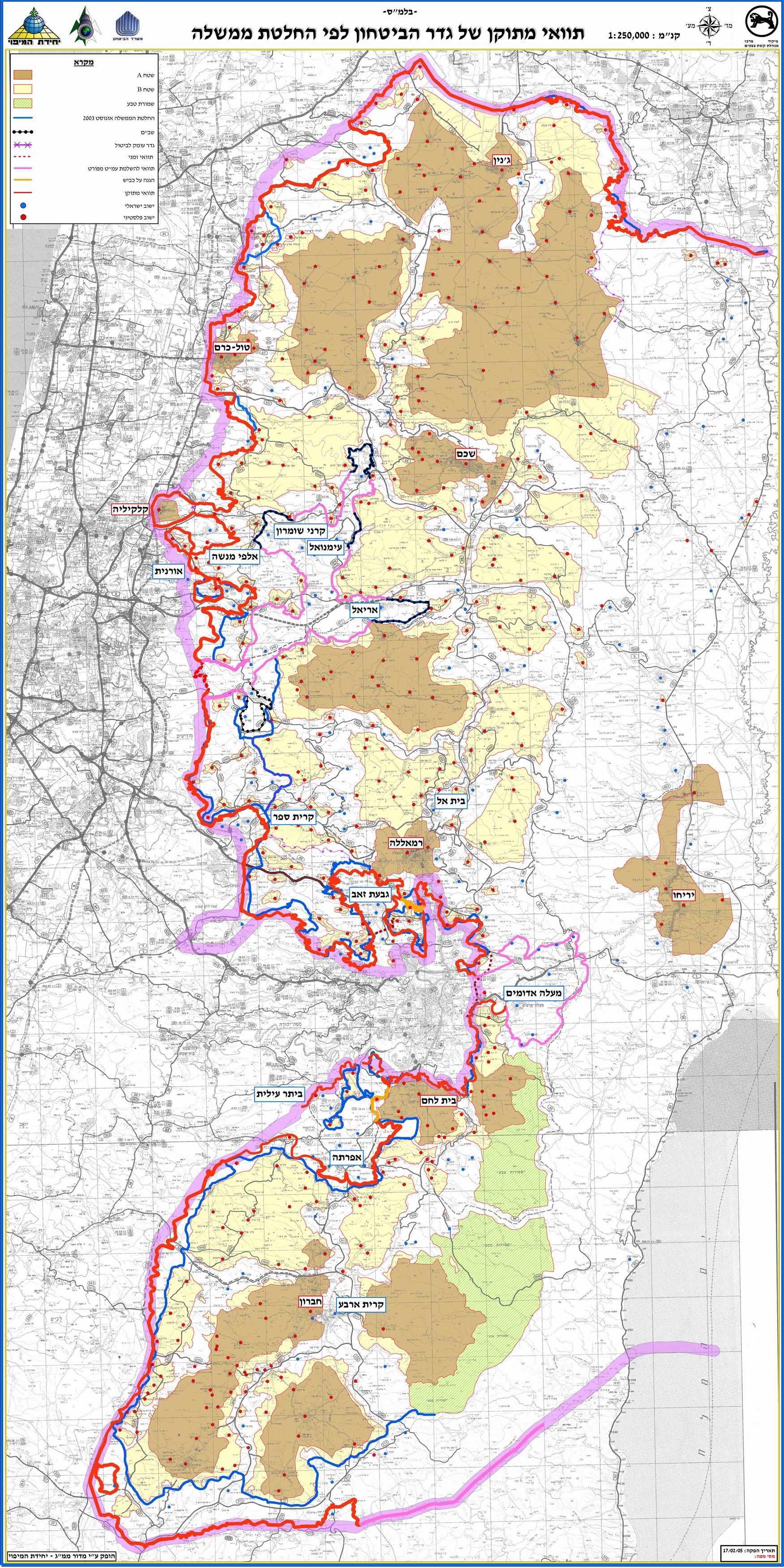 establishes a new demographic line that extends Israel eastward into the West Bank.